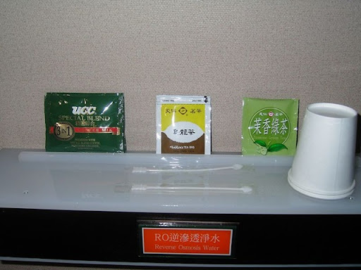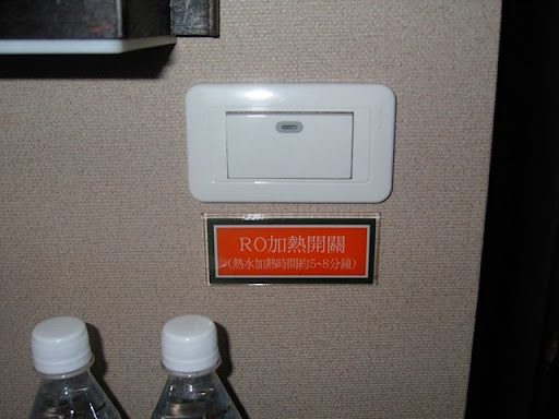 房間裡面熱水提供方式也很特別,一般來說,都會有熱水跟冷水,或是只有單獨冷水可以使用,而這邊卻用了一個RO加熱開關,以進行加熱!