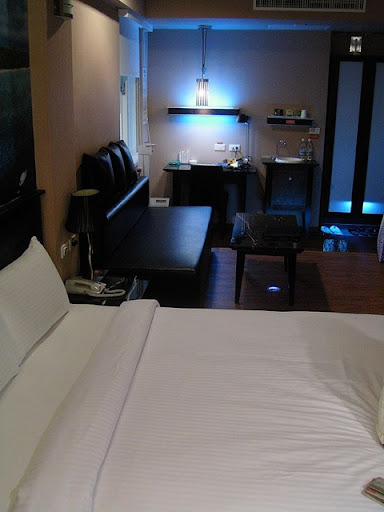 進房之後的第一件事情就是拍照!!因為我們在看房的時候,2280的房間裡面有很重的煙味,實在受不了,所以請他們換一間房間,是在九樓!不過櫃臺說電梯只到八樓,九樓要在另外走樓梯上去。當下,我有點怕怕的,這樣子感覺好像九樓是加蓋耶!!果不其然,電梯到了八樓,走上九樓,就發現整個樓層的設計平面圖,跟其他樓層不太一樣!不過,又想到他們有拿到防火標章,連機車都不願意暫時讓我停在騎樓,應該是不太會有問題吧。