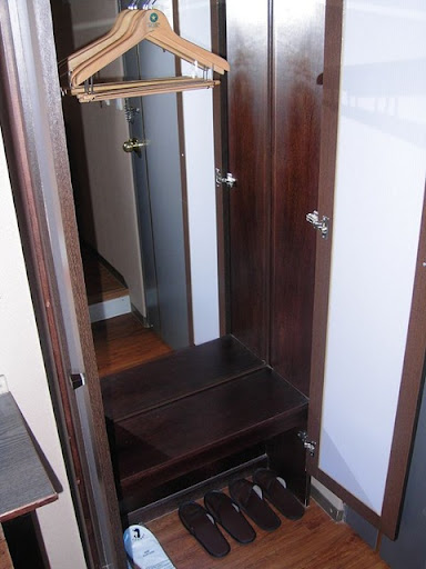 一進門的右手邊就是衣櫥,有兩種脫鞋,也有衣架,不過,他沒有附洗衣袋,算是一個小小的缺憾嚕!!
