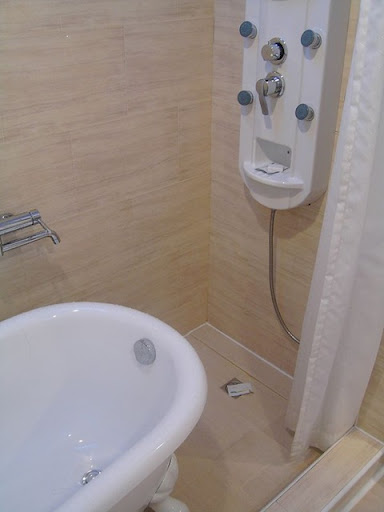 雖然說感覺整個飯店的服務非常的棒,不過我個人還是覺得有些地方可以再改進嚕。我覺得最令人捆擾的就是浴室的設計。我猜想當初可能只有單純的淋浴設施而已吧,浴缸是後來才添加入的吧!當然這只是我的猜測而以嚕,因為浴室裡淋浴的空間算是很小了,再加上一個浴缸,實在沒有什麼額外的位置可以站在浴缸之外淋浴,沖洗身體,似乎只好站在浴缸裡面洗澡了!不過我本人體重不是很輕,所以站在浴缸裡面洗澡,都會一直聽到一些聲音,就是浴缸快要破掉的感覺,洗得有點提心吊膽!
