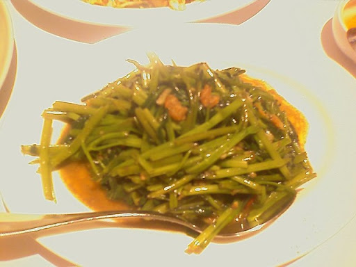 第三道是蝦醬空心菜。算是蠻令人失望的吧!沒有很濃的蝦醬味,而且炒得挺油挺鹹,感覺好像沒有到大餐廳的水準說=.=#再加上我們沒有叫白飯,所以,跟其他好吃的菜相比,吃得有點辛苦:P