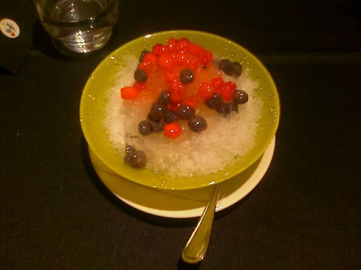 最後上的是甜點「冰」的摩摩喳喳。為什麼要特別說是冰的呢?因為服務人員說他們有提供熱的摩摩喳喳。熱的摩摩喳喳??我真的不敢想像耶,所以還是點冰的摩摩喳喳來吃,好像會比較正常些。不過送上來摩摩喳喳的時候,有點傻眼啦!!因為感覺怎麼都沒有料,原來,料都藏在冰下面@@把整碗用湯匙攪拌之後,在細細的品嚐,不知道以前吃的才是真的摩摩喳喳,還是瓦城的摩摩喳喳才是正統的,感覺並沒有很好吃說:XD