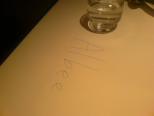 - 服務:我個人覺得碰到的女性服務人員都長個很漂亮,服務態度也OK,而且幫妳點菜的服務人員還會在桌巾上,寫下他的英文名字喔!!