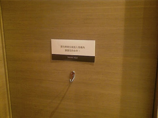 - 環境:因為高朋滿座,不曉得二樓是不是也都是人,整個餐廳都熱鬧烘烘的,很像一般的中菜館,大家都在聊天,想不注意到隔壁桌在聊啥,也有點難。另外就是用餐時播放的音樂有點糟糕,都是一些快節奏的音樂,雖然都是大家耳熟能詳的歌,不過在這樣的用餐環境下,撥BON JOVI的it's my life實在是不太適合吧 !另外值得一提的就是他的廁所設計得很特殊,是男女合用的,裡面每一間都有馬桶、洗手台跟化妝鏡,有點像是放大且高級版的高鐵或是飛機廁所。