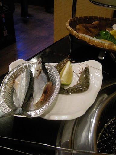 讓我覺得有趣的就是,燒烤的肉和菜類都是用金屬的架子疊起來地,分成三層。最上面的是雞肉,再來是豬肉跟牛肉,最下面一層是蔬菜。牛肉跟豬肉不錯吃,不會切得太厚,也有適當的油脂。雞肉的話,跟其他兩種肉類一樣,沒有事先醃過,同時店家也沒有提供豬油或是奶油之類,所以,雞肉會變的有點不太好烤。當然這也可能是我們技術太差了,最後都把雞肉烤得乾乾癟癟地@@