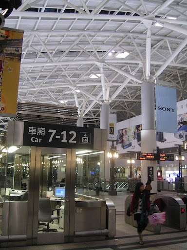 經過漫長的等待時間,做了下一班經過新左營的火車,來到了高鐵左營站。依照著台鐵站務人員的說法,從高雄火車站坐到新左營大概在十分鐘左右,不過從火車原先預定開車的時間,到從台鐵新左營站走出來,已經差不多花了十五分鐘了。又恰好我是在星期六坐車,所以先看到櫃臺很多人再排隊買票,因此我想說嘗試看看使用自動售票機買票,結果,真好樣的,有一邊的機器,我送入一千塊進去,都不能吃,天阿,快要嚇死我了,我就只剩下那最後的一張一千塊耶,既沒有帶信用卡也沒有帶提款卡,萬一被吃了不就慘死=.=#只好乖乖的跑到櫃臺排隊去買票,結果一問之下,竟然是只要沒有五百塊的鈔票可以找,機器就不會吃鈔票,真的快要暈倒了!這樣先進的地方,竟然機器可以笨成這樣子,真是太出人意料之外啦!就這樣,從離開台鐵高雄站到買完高鐵的車票,就花了我將近半個小時的時間嚕。要好好的記住轉乘跟買票用的時間,以後才能算的更精準些!