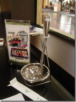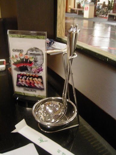 一照相,就看準了旁邊的湯匙,一種撈湯的,一種撈料的!我們點的是最便宜的雙人套餐,然後貼錢換了一個韓式海鮮餅!