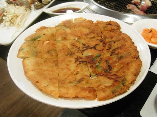 最後一張照片就是韓式海鮮煎餅嚕!裡面的料不少,恰恰好一半很脆,另一半是比較軟地,一種餐點,有兩種享受方式,挺妙啦!!