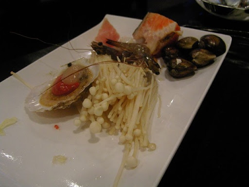 把蔬菜跟丸子丟入鍋子之後,剩下來的海鮮跟金針菇。同樣的,海鮮真的不錯吃耶!