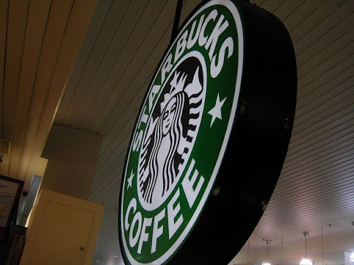 ↑星巴克一貫會有的招牌,遠遠看還真的跟壹咖啡有點像:XD