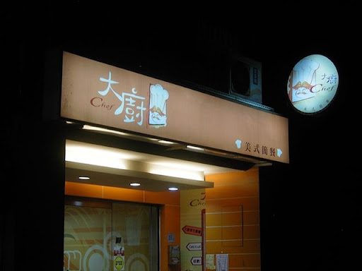 憑著上一次來的記憶,在一兩個巷口晃了一下,就看到了大廚的招牌,在這個有些暗且寧靜的巷子內,大廚的招牌顯得特別地明亮,感覺就像是在幽暗空間中,誘惑著我趕快進去吃進去吃:XD