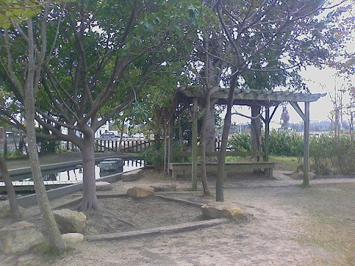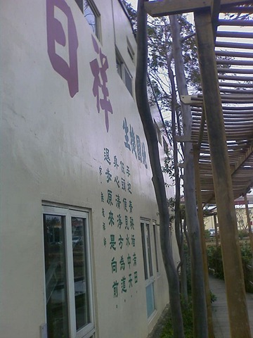 我記得沒錯的話,這邊應該是廁所的出口,而從這邊拍出去剛好可以照到整個草地。如果天氣不是那麼冷,而且我還是小孩子的話,我應該會很開心的在這草地上不停的滾來滾去的吧:XD接著就請大家欣賞一下我照的照片吧!