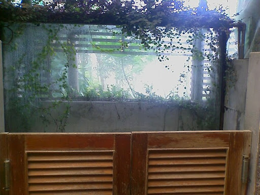 那就是男生廁所是用很簡單的門隔成的,但是沒有便斗,只有一條溝,沒錯,就是很原始的那種!然後站在溝前,以我的身高180上下,會被正前方透明的玻璃上的植物給弄到頭,想要舒服一下,就需要低頭或是彎腰一下。