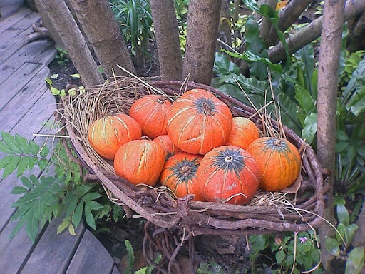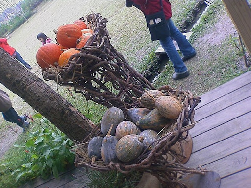 像是這些長得很漂亮的南瓜,一顆一顆的堆起來,很有那個萬聖潔的感覺呢!