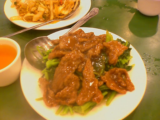 接下來連上了酸白菜炒肉絲跟炒牛肉兩道菜。先說說牛肉好了。肉很嫩很好吃,肉下面的青菜,炒的也不賴,不會太油,也是度的保持了青菜該有的青翠感!